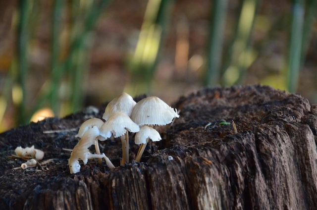 Von totem Pflanzenmaterial ernähren sich hingegen diese Helmlinge (wahrscheinlich der Rosablättrige Helmling, ich bin nicht ganz sicher). Sie siedeln sich bevorzugt auf Eichen-, Fichten- oder Buchenholz an